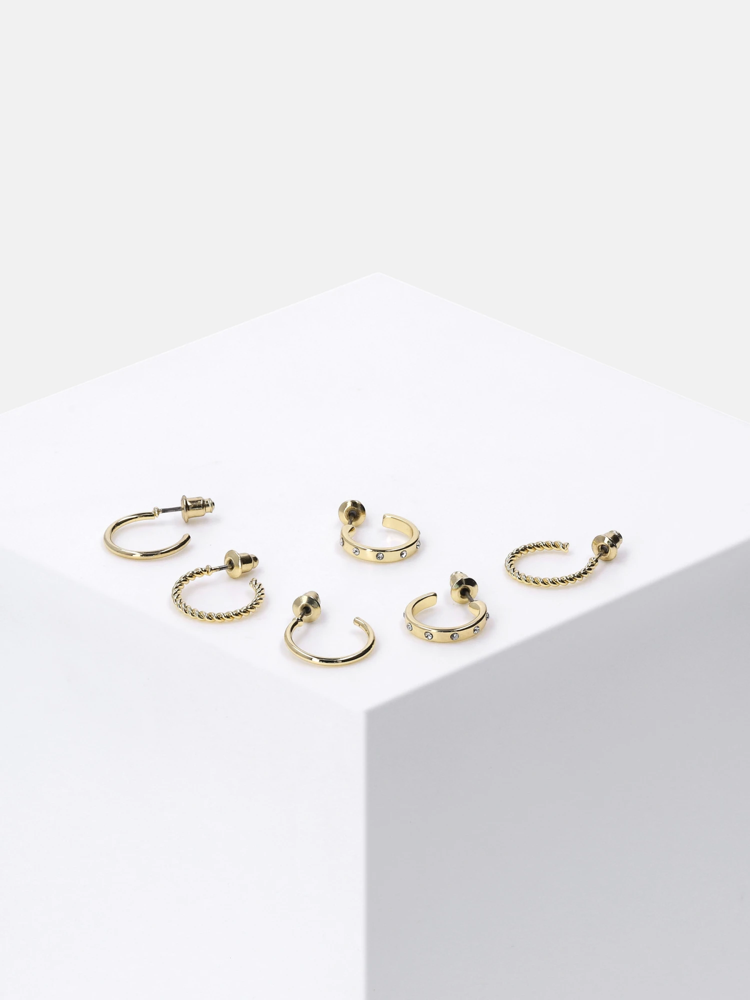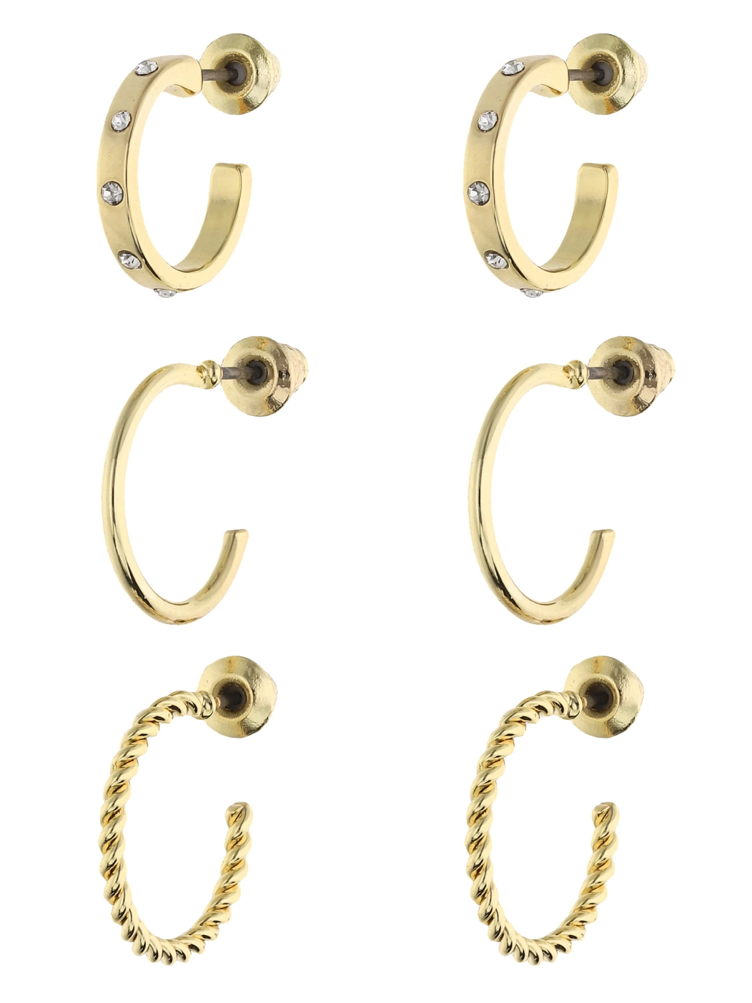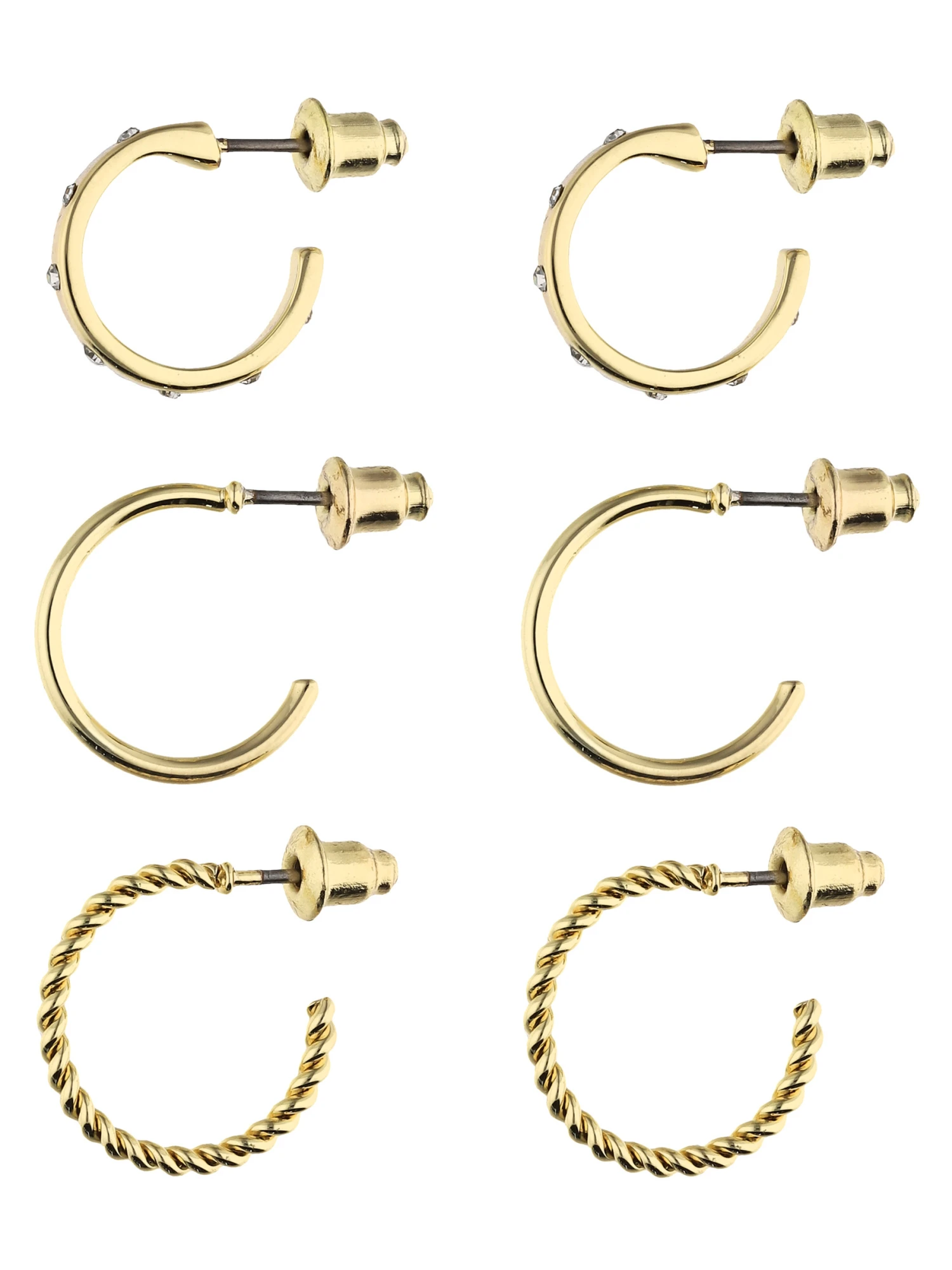 Mix & Match: Set aus 3 Paar Creolen, die sowohl einzeln als auch im modischen Earcandy-Stil getragen werden können. Funkelnde Strasssteine zieren teils die Schmuckstücke. Durch die hochwertige Vergoldung bekommt der Ohrschmuck den letzten Schliff verpasst.