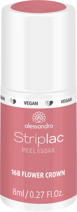 Das kräftige Rosa lässt Ihre Nägel in einer der schönsten Farbe des Frühjahrs erblühen.Das Beste– STRIPLAC ist VEGAN und TIERVERSUCHSFREI!Leichtes Auftragen, keine Trocknungszeit und bis zu 3 Wochen Haltbarkeit? Kein Problem! Einfach eine Schicht Flower Power Striplac auftragen und mit dem Top Coat versiegeln. Dank der Peel or Soak Innovation lässt sich der Lack gleich auf zwei Weisen entfernen: Mit dem Peel-Off Aktivator kann der Lack mit Hilfe eines Hufstäbchens in einer Schicht entfernt werden, mit dem Soak-Off Liquid wird dieser mit Hilfe der Folienpads sanft abgelöst. alessandro Striplac – für wunderschön-funkelnde Nägel in nur 15 Minuten!Produktdetails• Flower Power Striplac in Rosa• Bis zu 3 Wochen Haltbarkeit• Keine Trocknungszeit• Schnelle Peel-Off oder Soak-Off Ablösung• Schützt und festigt den Naturnagel• VEGAN und Tierversuchsfrei• Hinweis: Lack trocknet nicht ohne alessandro LED-LampeSchluss mit lästiger Trocknungszeit: Farblack auftragen, 60 Sekunden unter LED aushärten, mit dem Top Coat versiegeln und weitere 90 Sekunden unter LED trocknen – für ideale Nägel in 15 MinutenStriplac Peel or Soak ist das Must-Have für jede Frau, die Wert auf schöne Nägel legt! Nägel wie aus dem Nagelstudio in etwa 15 Minuten! Striplac ist ein einzigartiger Nagellack, der wesentlich länger hält als herkömmlicher Nagellack – bis zu drei Wochen. Hochglanz bis zum letzten Tag! Striplac kann einfach und streifenfrei aufgetragen werden, deckt bereits nach der ersten Anwendung, ist kratz- und splitterfest. Keine lästige Trockenzeit, denn Striplac härtet in 60 Sekunden im LED-Gerät. Das Ergebnis ist eine perfekte UV/LED-Maniküre wie aus dem Nagelstudio. Das Beste– STRIPLAC ist VEGAN und TIERVERSUCHSFREI!Zum schnellen Ablösen gibt es zwei Möglichkeiten: Schnelle Peel-Off or Soak-Off Lösung. Durch den Peel-Off Aktivator lässt sich der Striplac einfach vom Nagel abziehen oder Sie nutzen die Soak