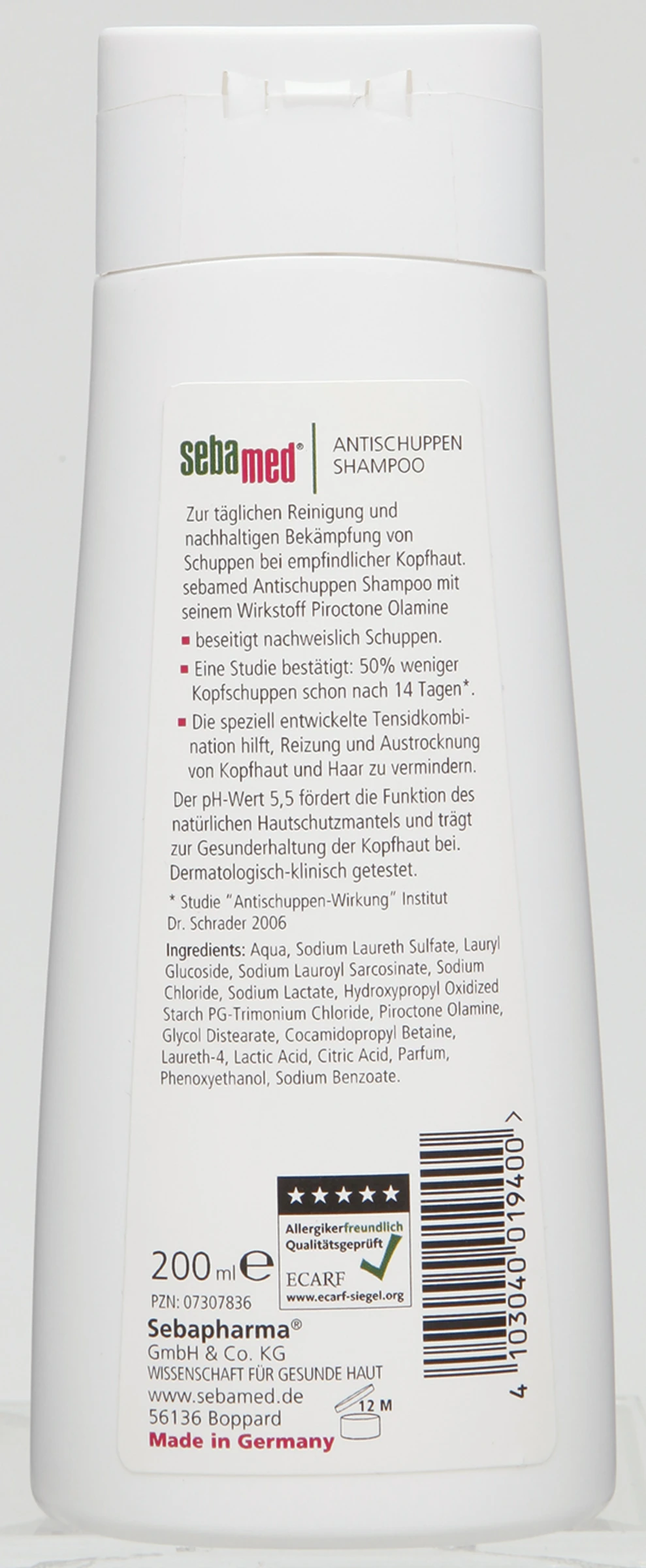 Zur täglichen Reinigung und nachhaltigen Bekämpfung von Schuppen bei empfindlicher Kopfhaut. sebamed Antischuppen Shampoo mit seinem Wirkstoff Piroctone Olamine