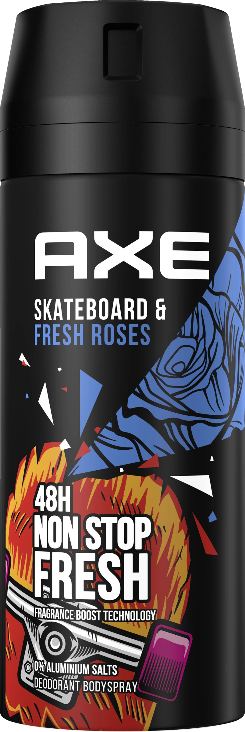 Deodorant AXE Bodyspray Skateboard & Fresh Roses ohne Aluminiumsalze! Ganz genau, vollkommen richtig gelesen: Skateboard & Fresh Roses! „Das ist aber eine ungewöhnliche Kombination“ wird man jetzt wahrscheinlich denken. Und auch das stimmt: Eine ungewöhnlich gute Kombination, um genau zu sein.