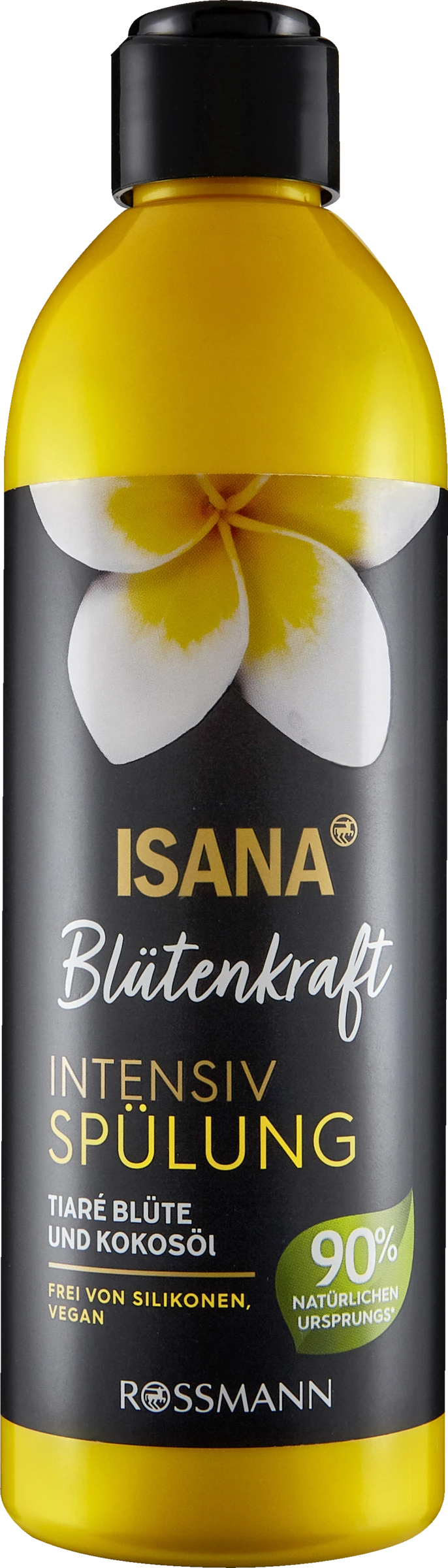 ISANA Blütenkraft Intensiv Spülung mit wertvollem Blütennektar, Tiaré Blütenextrakt und Kokosöl unterstützt die Repairfunktionen des Haares und schützt es vor Spliss, ohne zu beschweren. Die Spülung mit einer natürlichen Note sorgt für gepflegtes und gesundes Haar ohne Frizz – jeden Tag!Diese Rezeptur ist zu 100 % ohne Mikroplastik.