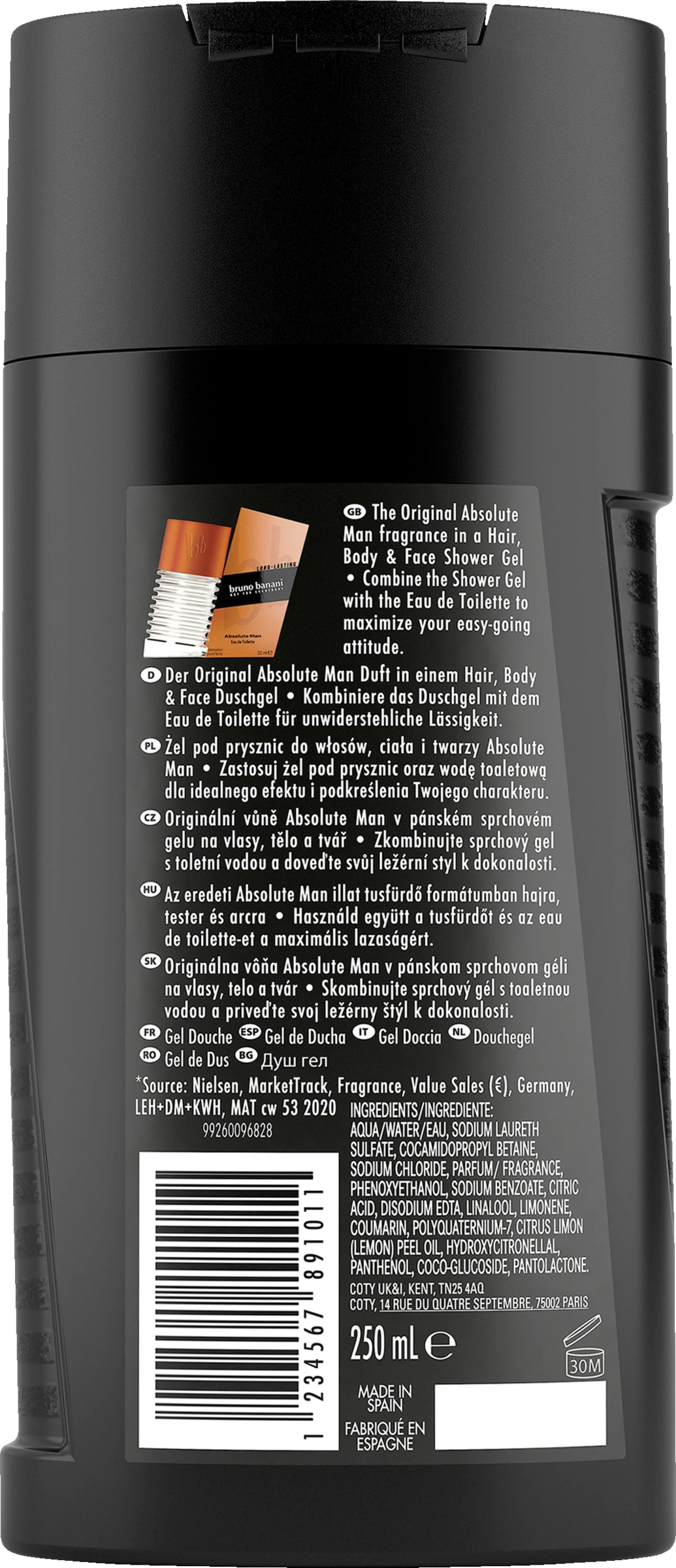 Der Original Absolute Man Duft in einem Hair, Body & Face Duschgel. Kombiniere das Duschgel mit dem Eau de Toilette für unwiederstehliche Lässigkeit.
