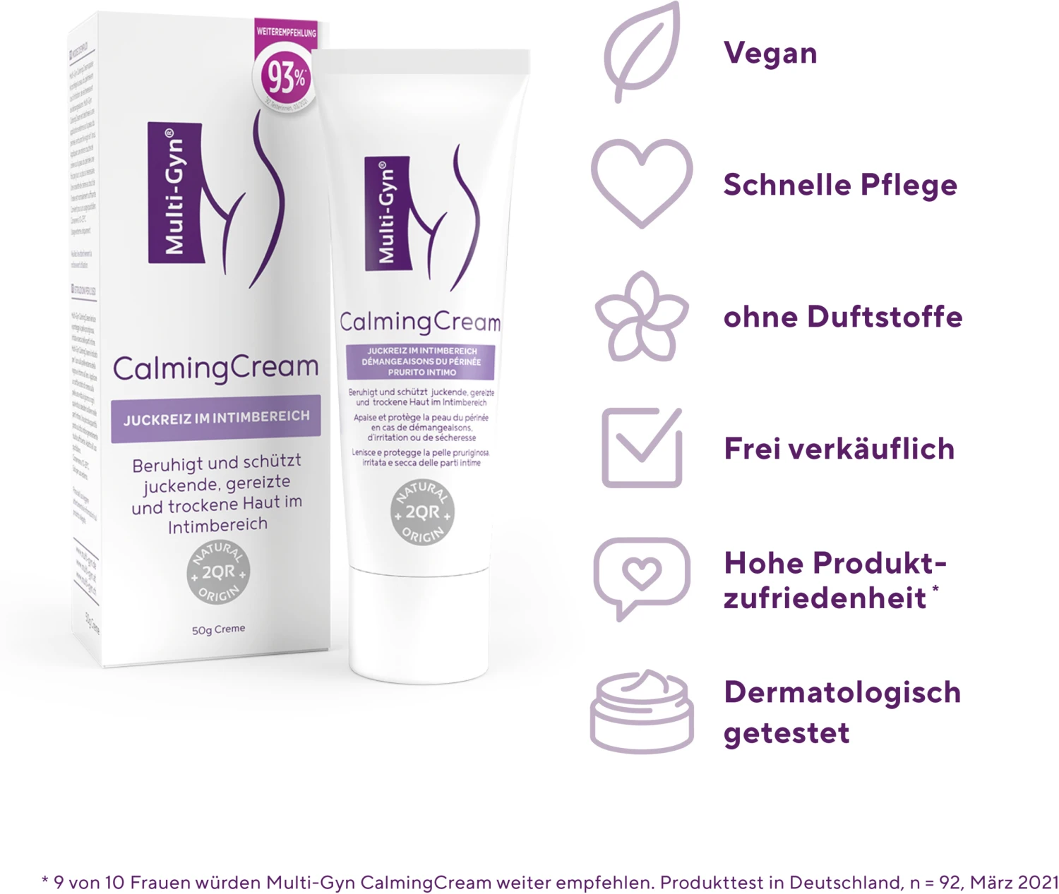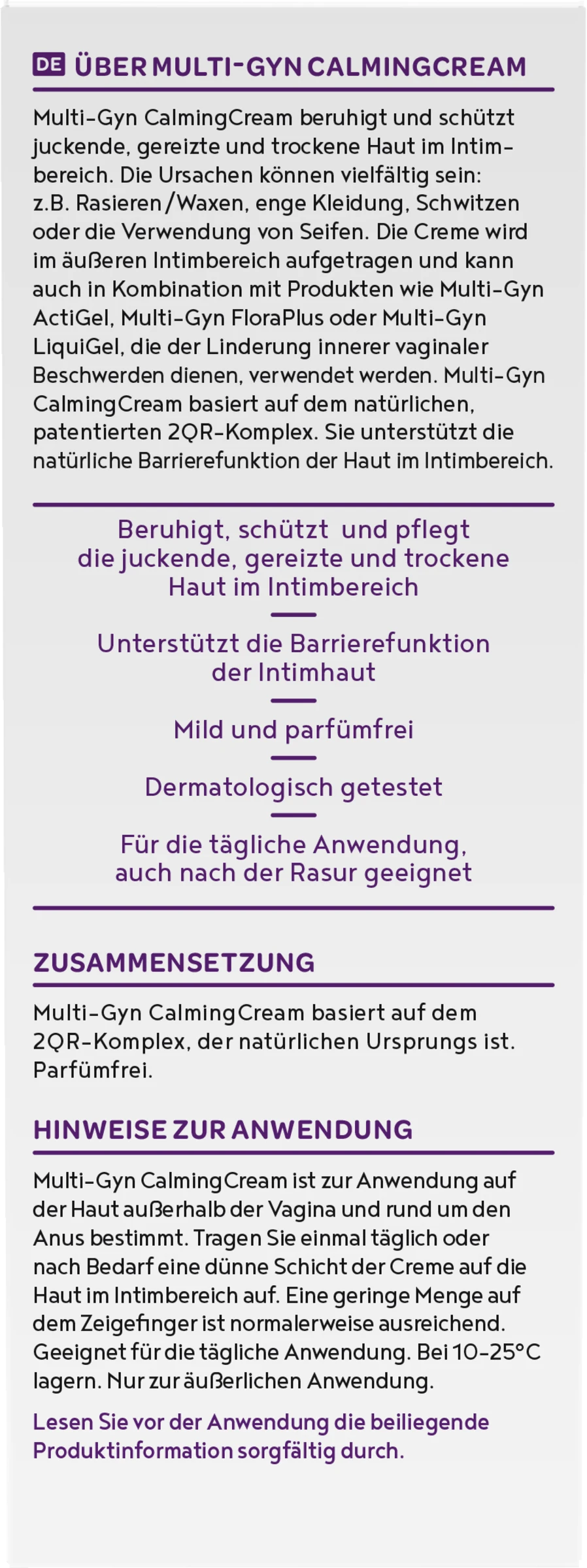 Die Multi-Gyn® CalmingCream beruhigt und pflegt die Haut im äußeren Intimbereich.