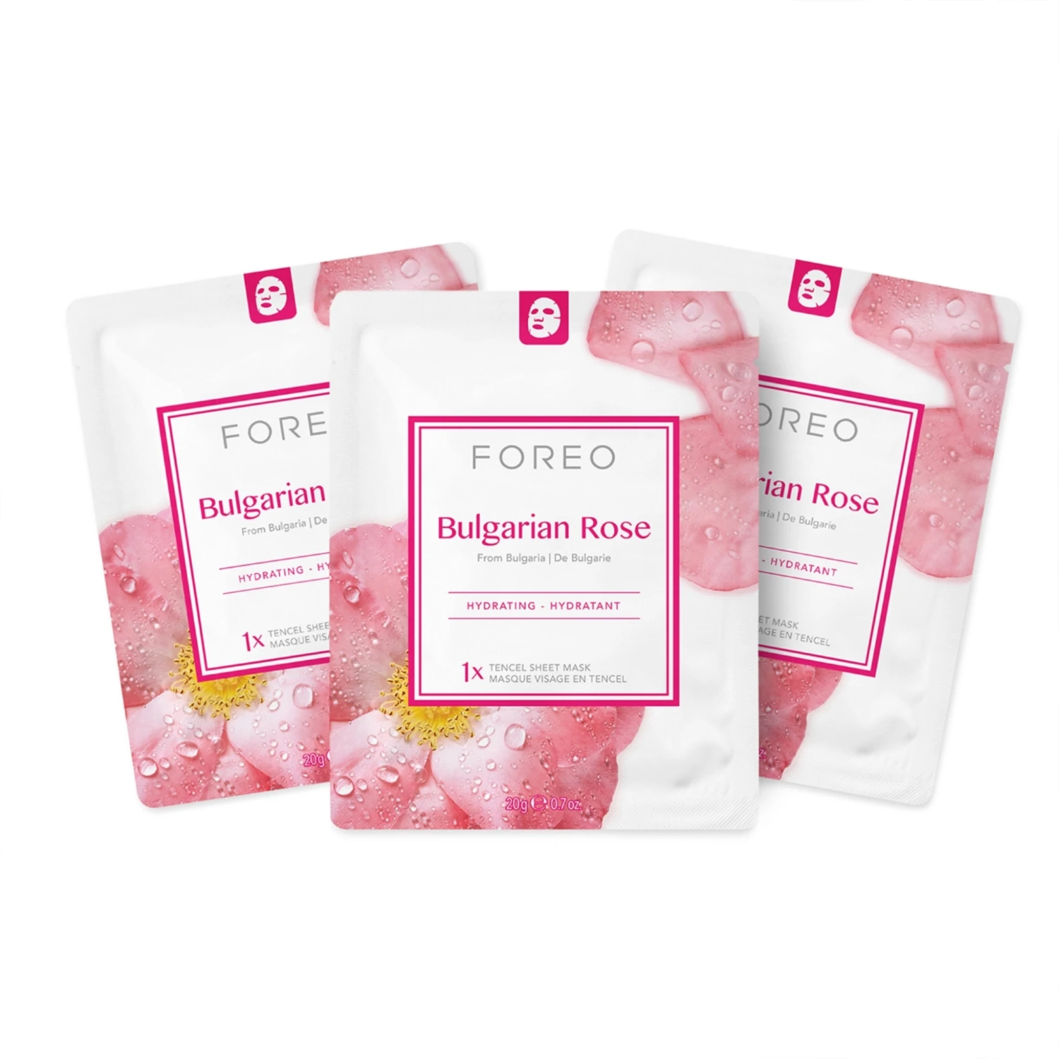 FOREO Bulgarian Rose feuchtigkeitsspendende Sheetmaske für trockene, müde Haut – LASS DEINE HAUT ERBLÜHEN.
