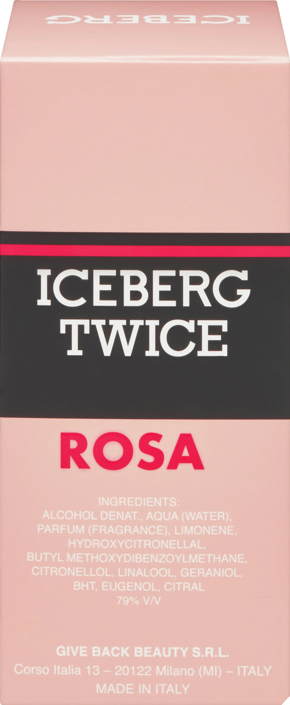 Alcohol Denat., Aqua (Water), Parfum (Fragrance), Limonene, Hydroxycitronellal, Butyl Methoxydibenzoylmethane, Citronellol, Linalool, Geraniol, BHT, Eugenol, Citral. 79% V/V.