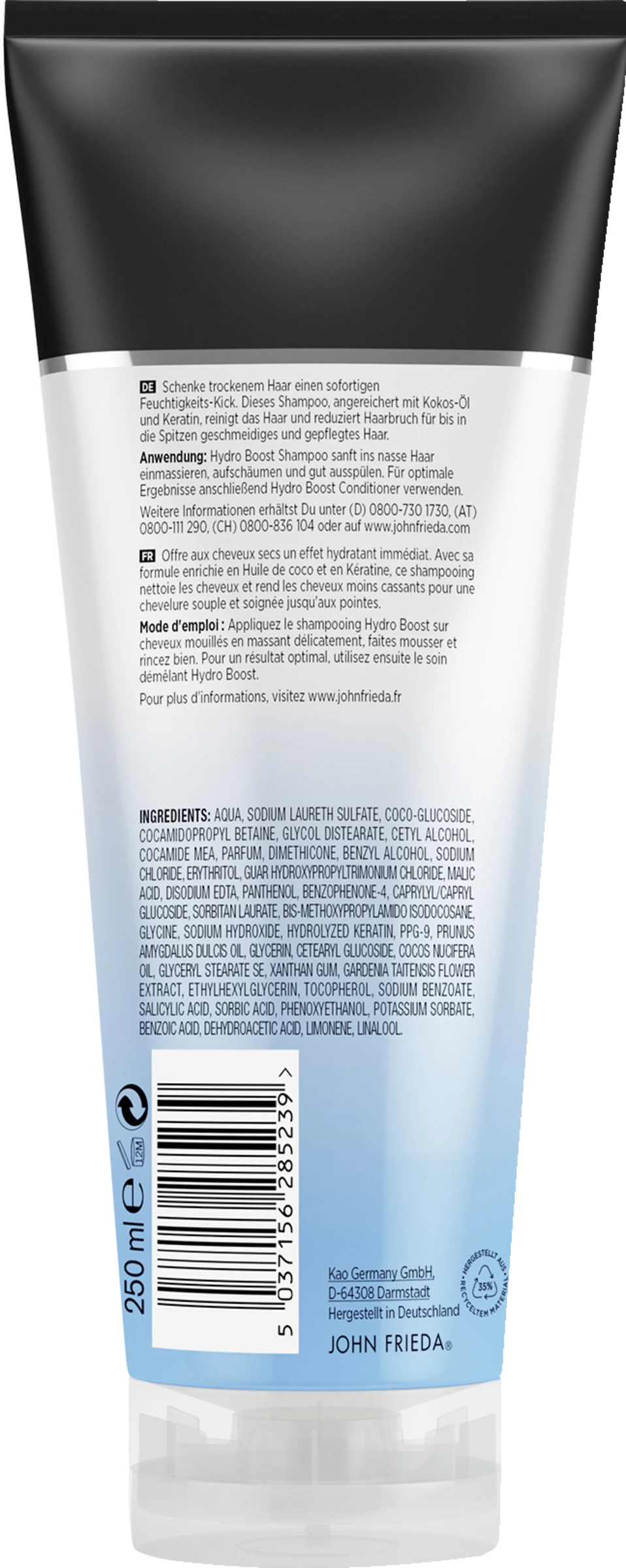 Hydro Boost Shampoo sanft ins nasse Haar einmassieren, aufschäumen und gut ausspülen. Für optimale Ergebnisse anschließend Hydro Boost Conditioner verwenden.