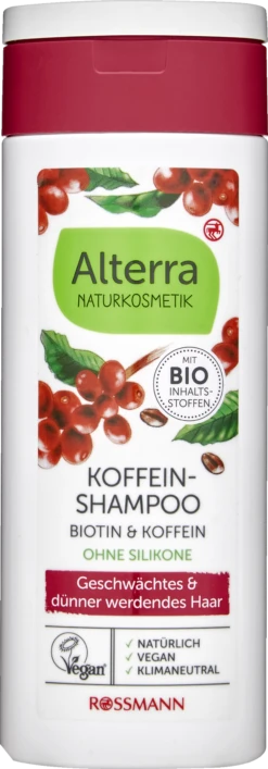 Energy-Boost mal anders: Unser Alterra Koffein-Shampoo mit der hochwertigen Wirkstoffkombination aus Provitamin B5 und Biotin kräftigt und pflegt Ihre Haare. Das duftet nicht nur herrlich belebend, sondern kann dank Koffein anregend wirken und Ihrem Haar mehr Fülle verleihen.