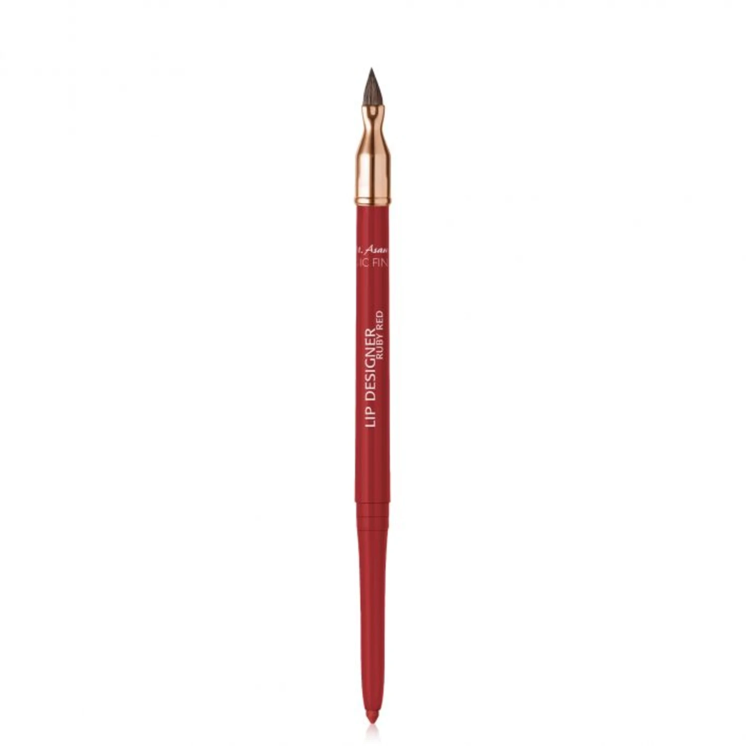 Der MAGIC FINISH Lip Designer aus dem asambeauty Sortiment zaubert Dir perfekt konturierte Lippen im Handumdrehen! Der Lippenkonturenstift verhindert das Auslaufen Deines Lippenproduktes über die Lippenkontur hinaus und sorgt mit seiner wasserfesten Textur für optimalen Halt bis zu 8 Stunden. Durch die softe, herausdrehbare Mine des Stiftes, lässt er sich besonders leicht auftragen und mit dem integrierten Pinsel kannst Du die Lippenlinie leicht verblenden. Trage den Lip Designer entweder pur, akzentuiere Deine Lippen. Der klassische Rotton Ruby Red ist ein muss für jeden Beauty-Lover.