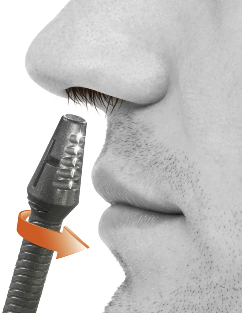 Der schmerzfreie Nasenhaar-Rasierer. Dank des innovativen Klingenschutzes wird deine Nase durch den Silkslide Pro Nasierer nicht verletzt. Außerdem brauchst du für die Nasur keinen Strom, keine Batterien und kein Ladekabel.