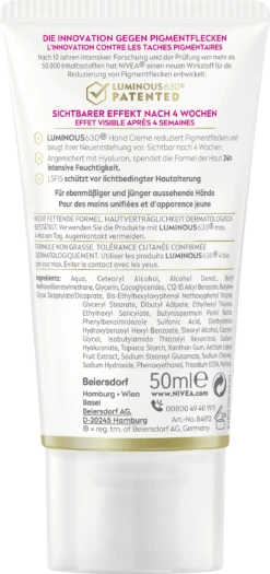 NIVEA Luminous Anti-Pigmentflecken Hochwirksame Hand Creme LSF15