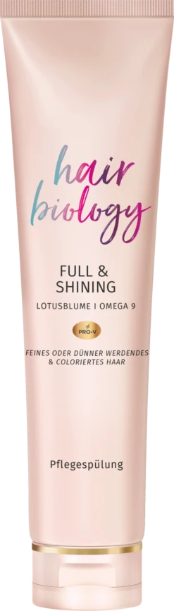 Entdecken Sie Hair Biology mit einem Nährstoff-Komplex, der auf die biologischen Bedürfnisse Ihrer Haare, in jeder Lebensphase, zugeschnitten ist. Die Hair Biology Full & Shining Pflegespülung verleiht ausdünnendem Haar Fülle, kräftigt die Wurzeln, belebt mattes Haar und hilft, Stylingschäden von coloriertem Haar zu reparieren – für strahlenden Glanz voller Lebendigkeit.