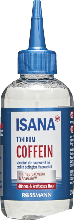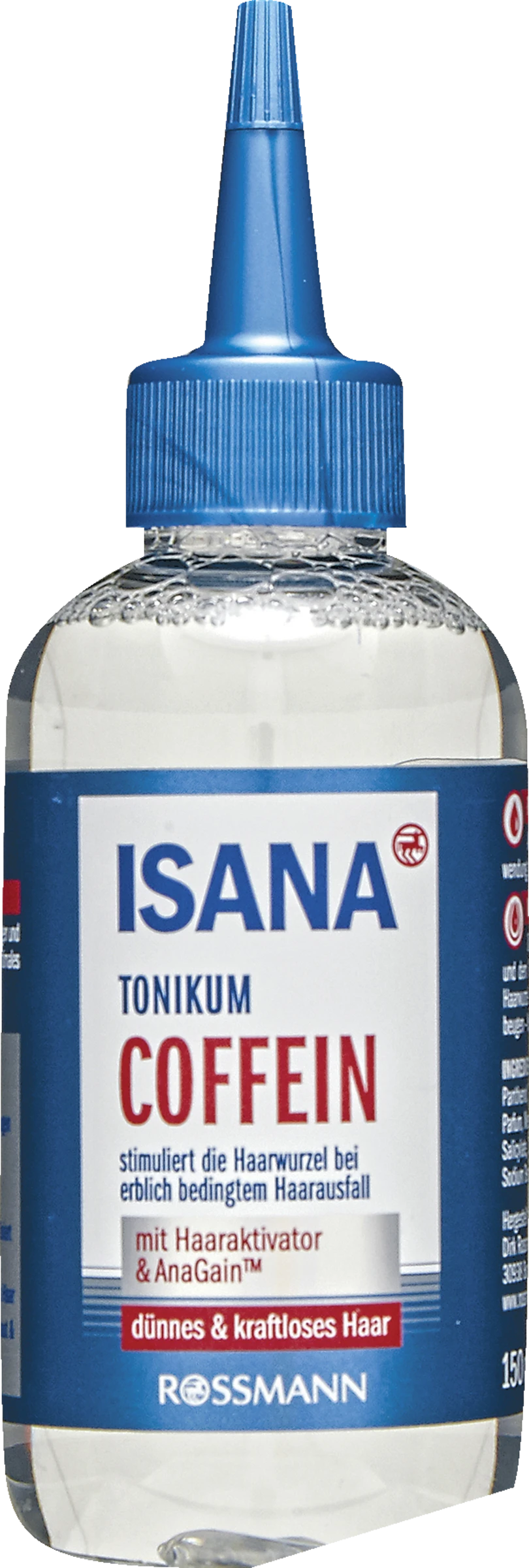 ISANA Coffein Tonikum mit AnaGain™ und dem Haaraktivator Coffein und Panthenol stärkt die Haarwurzel und hilft erblich bedingtem Haarausfall vorzubeugen – Kopfhaut und Haare werden belebt und gepflegt.