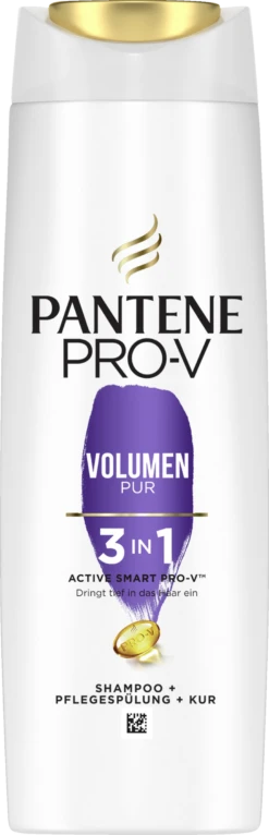 Reinigt das Haar sanft und versorgt es mit aktiven Pro-V Nährstoffen, kräftigenden Lipiden und schützenden Antioxidantien, um es von innen nach außen zu stärken*, sodass feines Haar voluminös und gesund aussieht. Dieses Pantene Pro-V Volumen Pur 3-In-1 Shampoo: